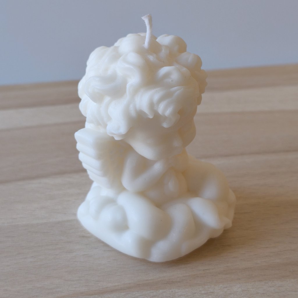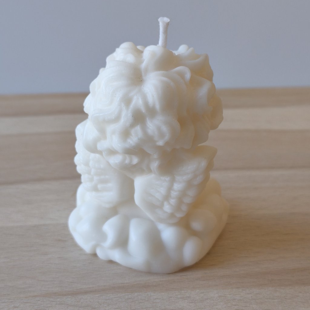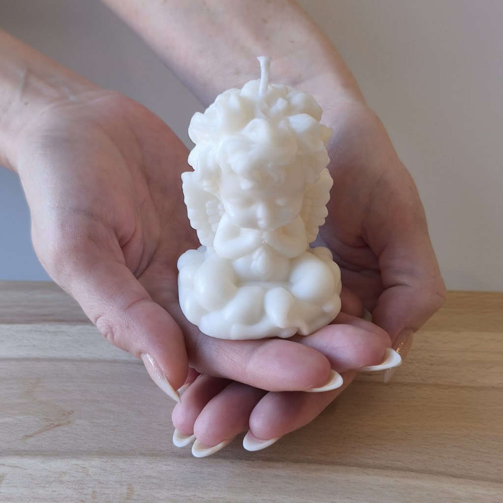 Jemná figurální svíčka s motivem modlícího se andělíčka, která působí klidně a harmonicky. Hodí se jako tichá vzpomínka, osobní dárek nebo dekorace, která vnese do prostoru pocit pohody.