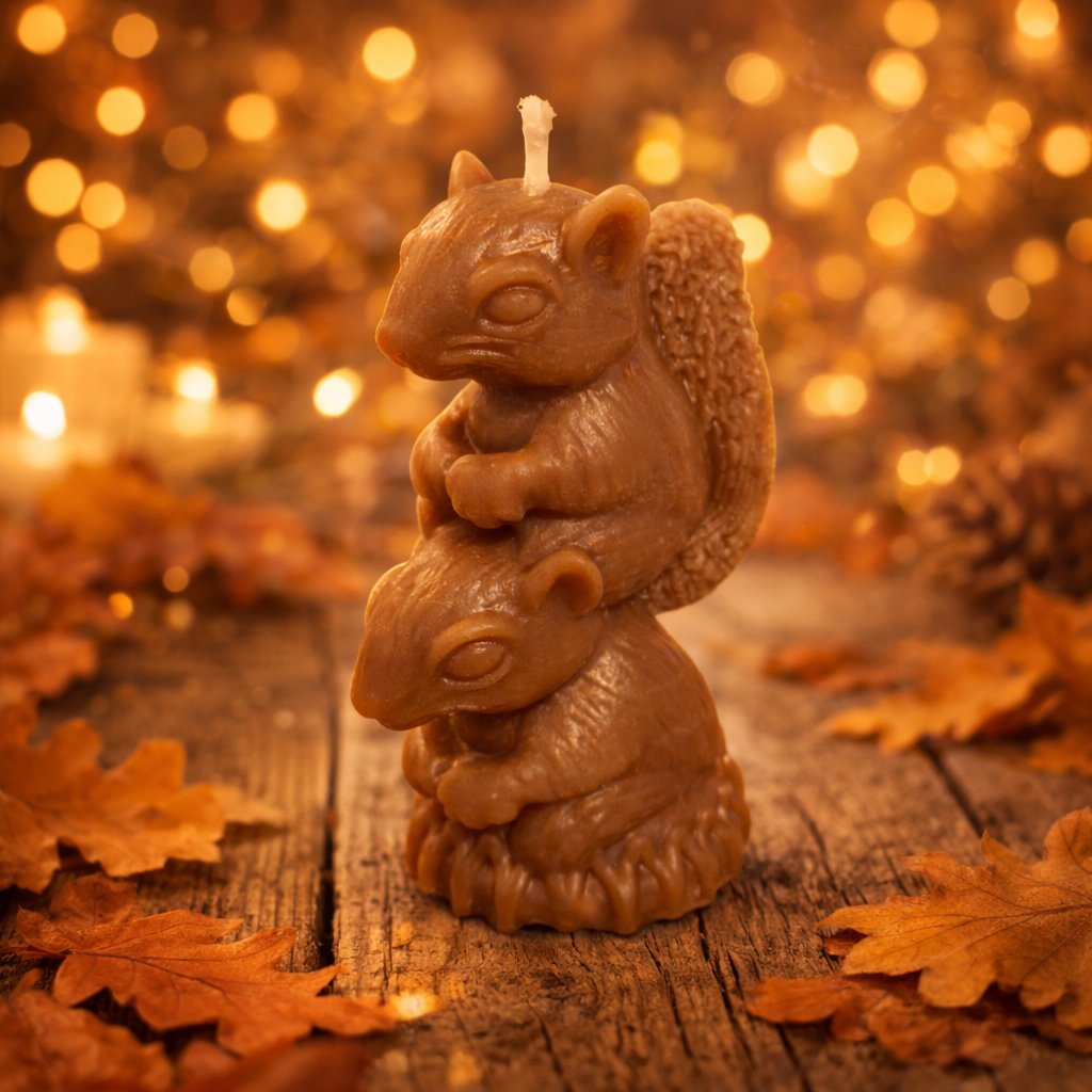 Ručně odlévaná svíčka s motivem rodiny veverek v nadčasovém designu, která vnáší do prostoru pocit tepla a pohody. Hodí se jak jako dekorace, tak jako osobní dárek pro ty, které máte rádi.