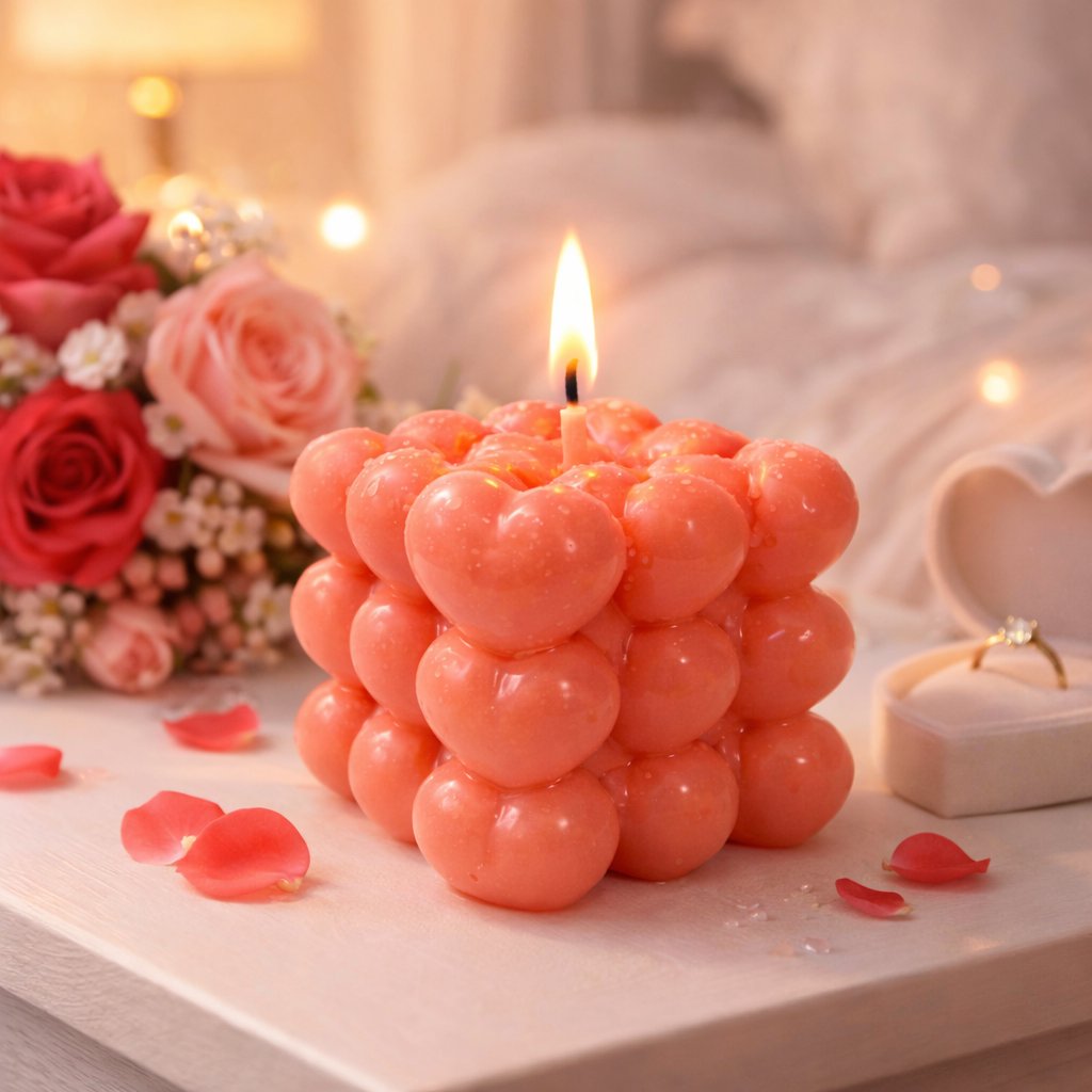 Motiv srdíček dodává svíčce jemný dekorativní charakter, díky kterému se hodí nejen k provonění interiéru, ale i jako pozornost pro někoho blízkého.
